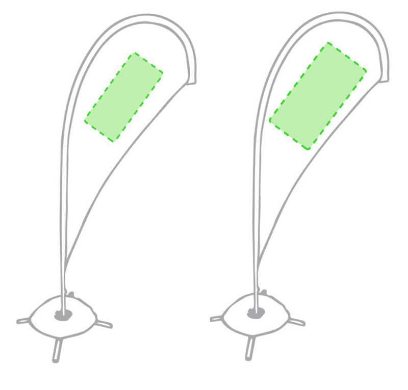 Indoor Flag Straight con formato gota, com estructura em alumínio para aplicação de grafismo flexível, base de suporte incluída. Ideal para eventos temporários no interior.