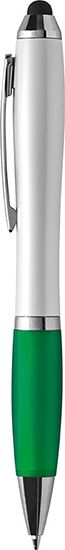 Esferográfica com ponteiro para ecrâ táctil. Materiais: Plástico.