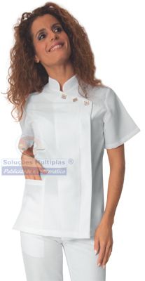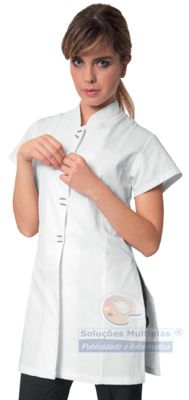 Túnica com 8 botões, vive em branco. 100% Poliester 190gr/m². Tamanhos: XS a XXL.