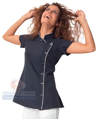 Túnica com 9 botões e bolso.