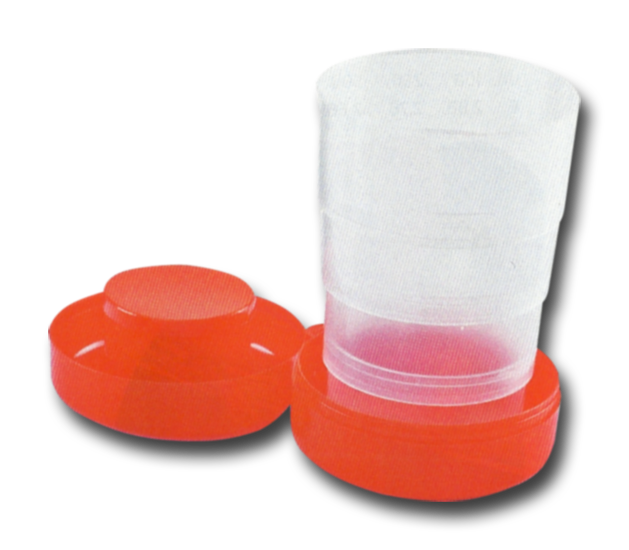 Copo retrátil de 200 ml, com mosquetão e compartimento para comprimidos.