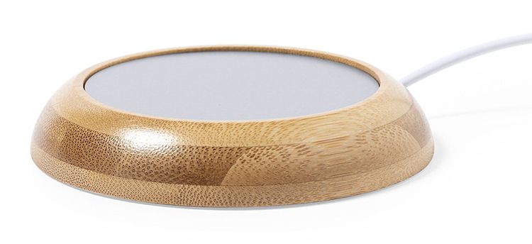 Aquecedor para taças, de conexão USB, superfície metálica para manter o calor. Base anti-deslizante. Materiais: Bambu, metal. Medidas: 1,9xØ10,4cm. Peso: 93gr.