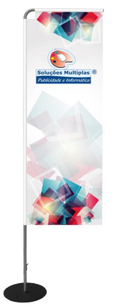 Indoor Flag Straight em formato recto, com estrutura em alumínio para aplicação de grafismo flexível, inclui base de suporte. Ideal para eventos temporários no interior.