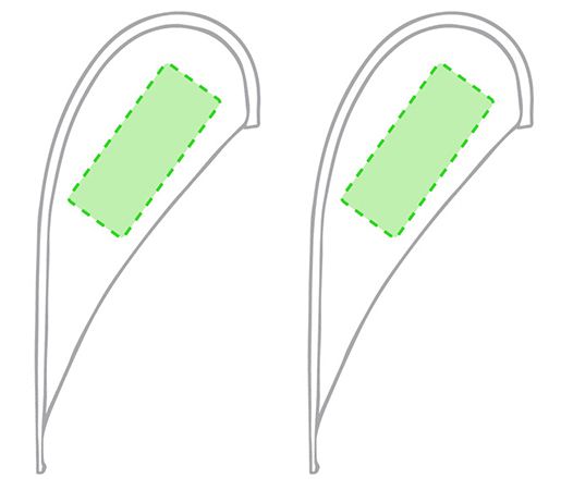 Indoor Flag Straight con formato gota, com estructura em alumínio para aplicação de grafismo flexível, base de suporte incluída. Ideal para eventos temporários no interior.