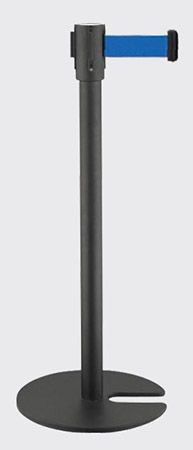 Barreira de delimitação preta com uma fita de cor azul e base com encaixe.