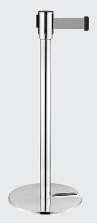 Barreira de delimitação cromada com uma fita de cor cinza e base com encaixe.