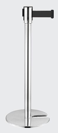 Barreira de delimitação cromada com uma fita de cor preta e base com encaixe.