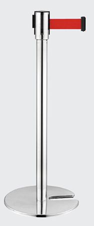Barreira de delimitação cromada com uma fita de cor vermelha e base com encaixe.
