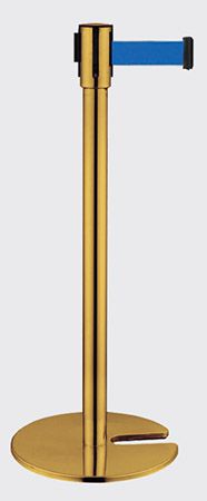 Barreira de delimitação dourada com uma fita de cor azul e base com encaixe.