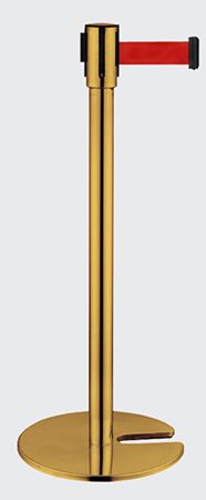 Barreira de delimitação dourada com uma fita de cor vermelha e base com encaixe.