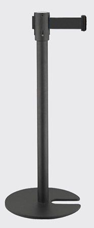 Barreira de delimitação preta com uma fita de cor preta e base com encaixe.