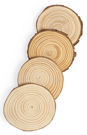Conjunto de 4 bases para copos em madeira com forma de tronco. Medidas: 4 x Ø10 cm. Peso: 200gr.