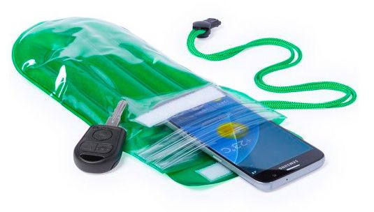 Bolsa para telemóvel em poliéster 600D RPET. Com fecho de correr e puxador de cordão.