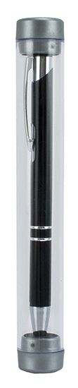 Estojo de plástico para 1 esferográfica. Medidas: 16,00 x 4,00 x 2,00 cm. Peso: 49,5gr.