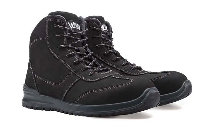 Biqueira de compósito. Resistente ao impacto de 200J. Palmilha Antiperfuração: em material têxtil, resistente a 1100 N. Tira posterior para uma fácil extração do calçado, personalizada com a marca VPRO.