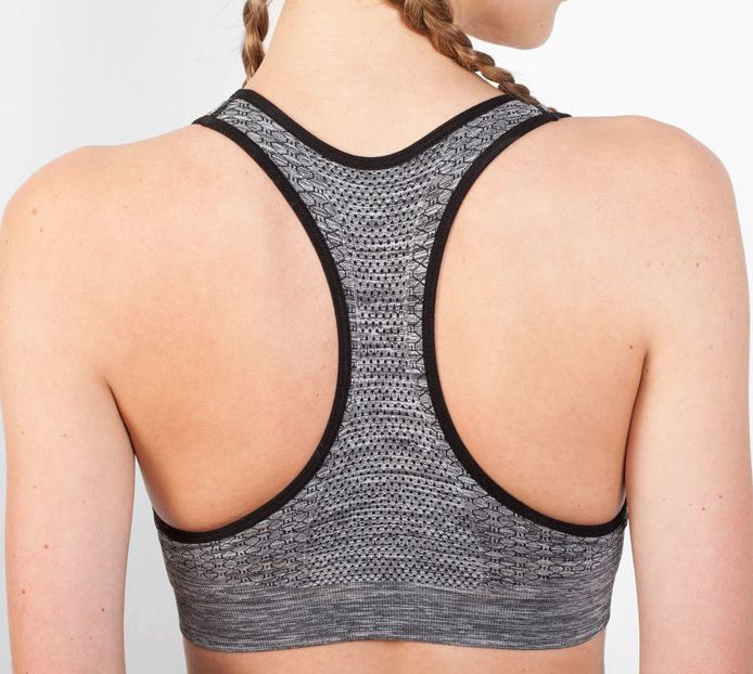 Top técnico feminino multi-desportos. Costas estilo nadadora e sem costuras. Fixação média. 60% nylon / 30% poliéster / 10% elastano, 240 g/m². Cor preto 02: 90% nylon / 10% elastano, 240 g/m²