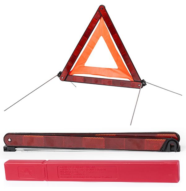 Triângulo de sinalização de emergência com caixa de transporte.
