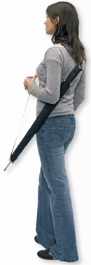 Chapéu-de-chuva com pega para colocar ao ombro.