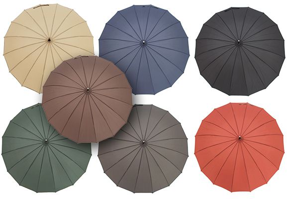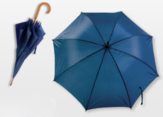 Chapéu-de-chuva manual com cabo de madeira.