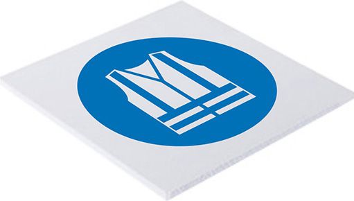 Sinal de obrigação de uso de colete. Disponível em várias medidas.