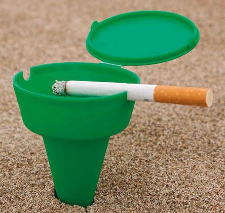 Cinzeiro portátil resistente com acabamento em cores vivas e base de fixação na areia. Medidas: 0 x 8.1 x 0 | 5.8 Øcm. Peso: 10 gr.